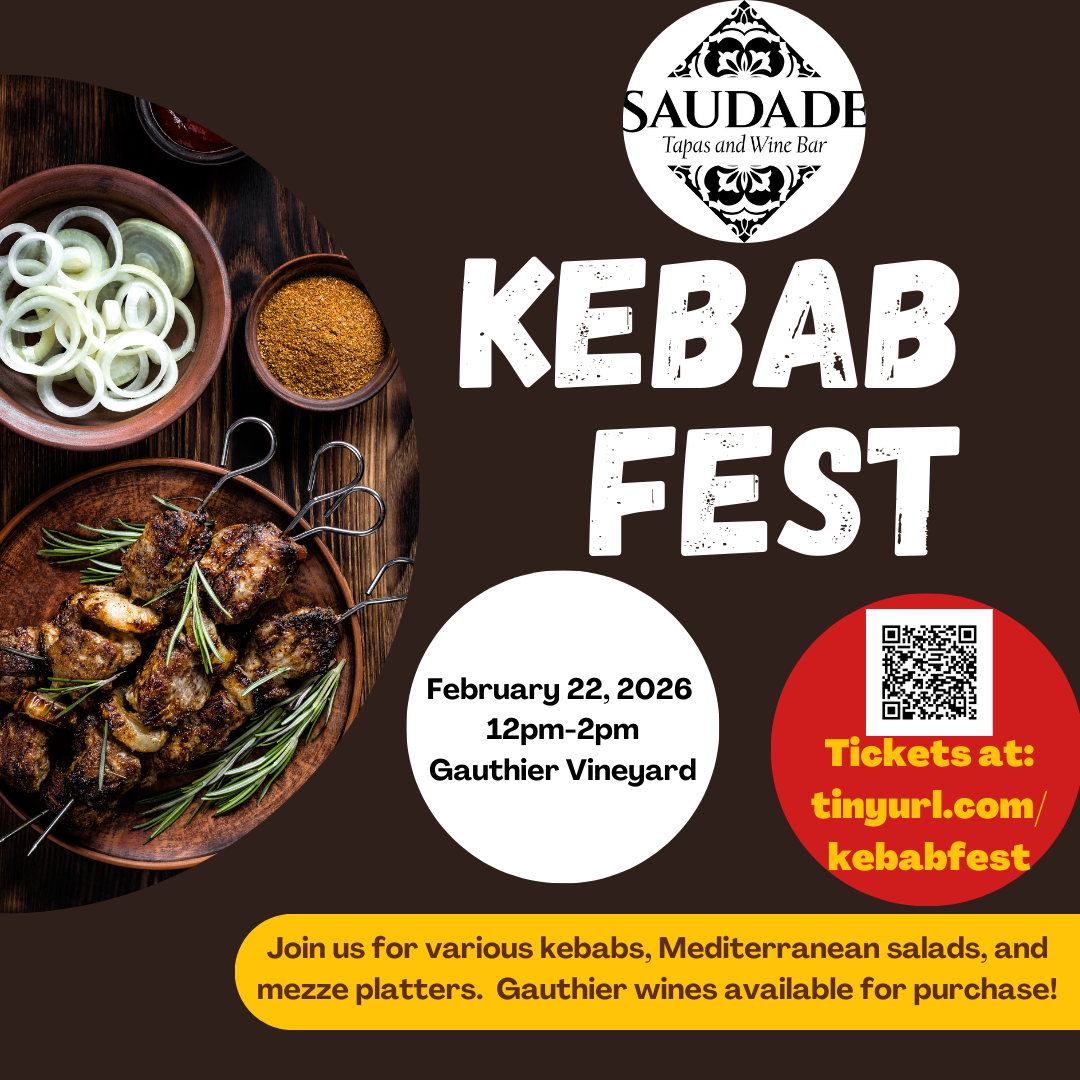 Join us for various kebabs, Mediterranean salads, and mezze platters. Gauthier wines available for purchase!