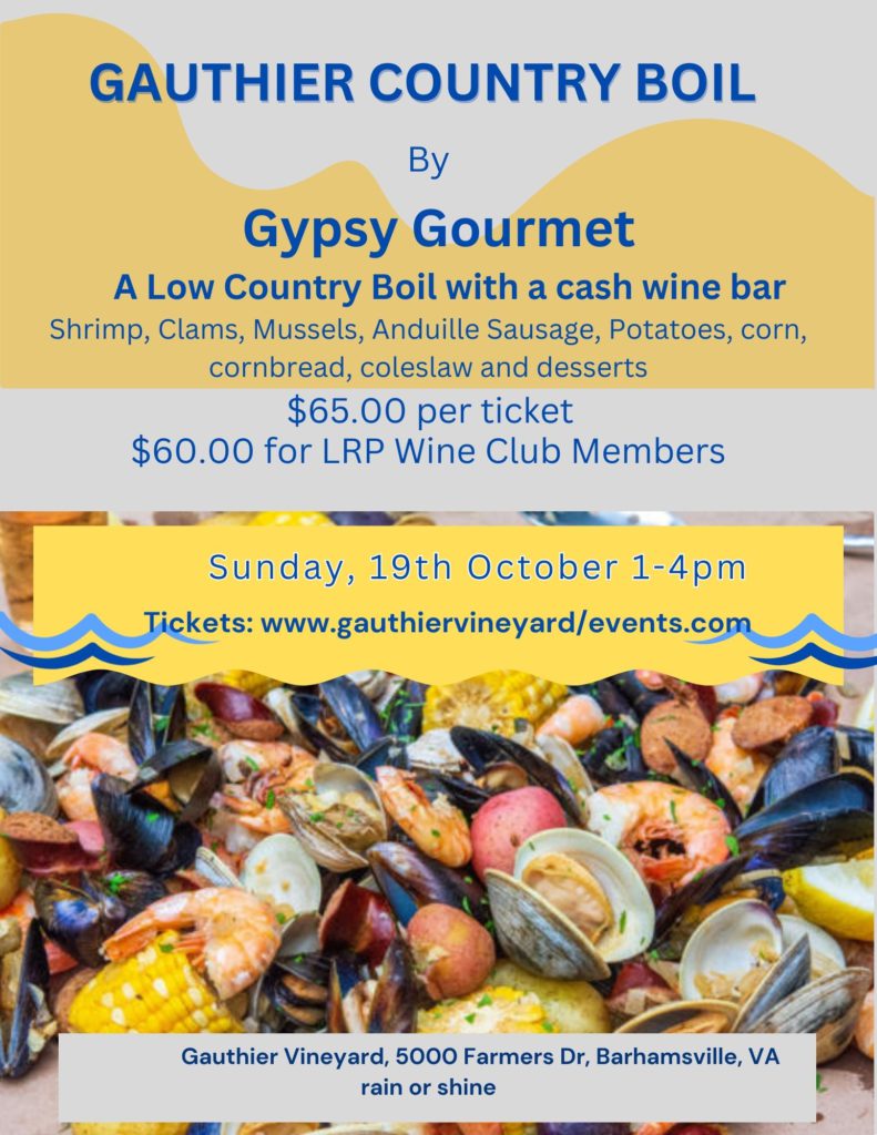 A Low Country Boil with a cash wine bar. Catering by Gypsy Gourmet.